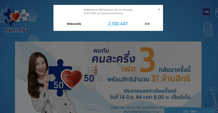 วนท 1 กรกฎาคม 2564 ซงเปนวนแรกของการใชสทธโครงการคนละครง เฟส 3 จายเงน 3000 บาทรอบแรก กค-กย.